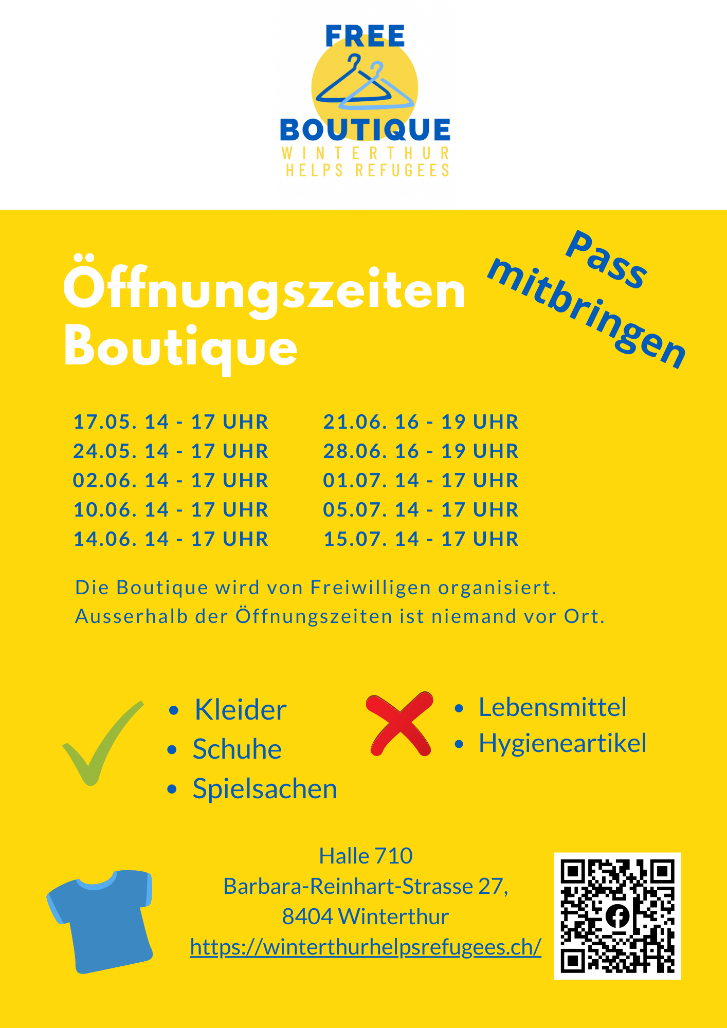 In der Free Boutique (Halle 710, Barbara-Reinhart-Strasse 27, 8404 Wintertur) können Hilfsbedürftige gratis Kleider, Schuhe und anderes "einkaufen". Der Store wird vom Verein Winterthur Helps Refugees organisiert und von Freiwilligen betrieben.