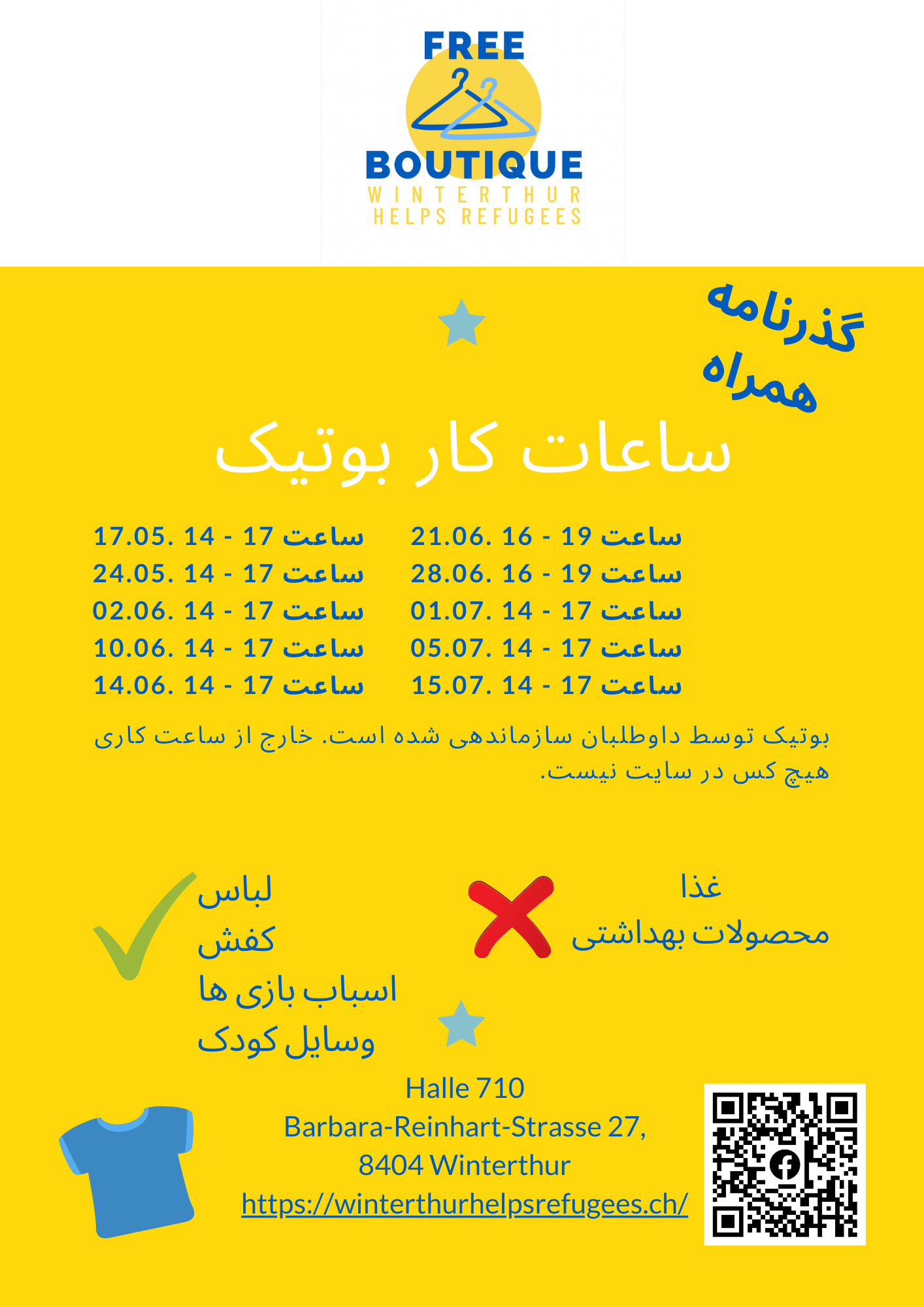 Die Hilfsbedürftigen registrieren am Eingang ihren Pass und dürfen den Store alle zwei Wochen aufsuchen. Die Zahl der Kleidungsstücke pro Person ist begrenzt. Die Aktion richtet sich an alle Hilfsbedürftige und nicht nur an Flüchtlinge aus der Ukraine.
